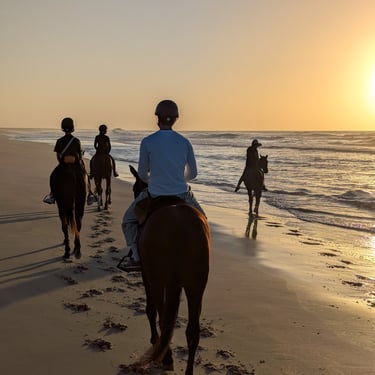 Accessible à tous, la balade se fait en douceur et s'adapte à votre niveau. Après une courte mise en confiance, vous profitez pleinement du cheval et du paysage, accompagné par un guide qui ajuste le rythme pour garantir confort, sécurité et plaisir tout au long de l’expérience. Et pour les plus à l’aise, il est possible de profiter de moments de galop sur ces grandes plages de sable fin.