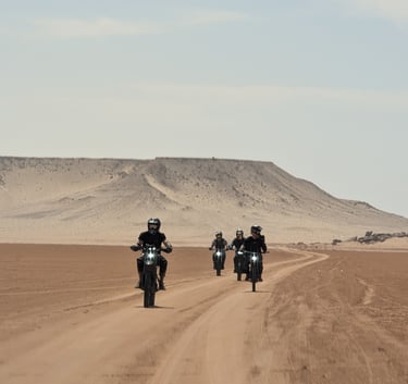 Journée d’exploration du désert en moto électrique, suivie de moments de détente et de réflexion sur les apprentissages du séjour. La fin de journée peut inclure une activité bien-être, comme un hammam ou une séance de relaxation, avant le départ.